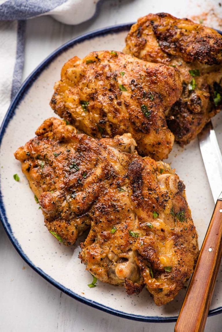 It's also more energy efficient because you don't need to preheat or turn on your oven. Cook at 400° until thighs are cooked through to an internal temperature of 165°, 15 to 20 minutes. While you can cook them to 165 °f for safety sake, it's a widely accepted knowledge among professional cooks that cooking chicken thighs to a higher temperature breaks. Line your basket with parchment paper or aluminum foil. Using our sweet dry rub, everyone gave it a thumbs up. Rub the thighs with your choice of herbs and spices, coating well. Learn how to cook juicy and crispy bone in chicken thighs in the air fryer! Air fryer chicken thighs are crispy on the outside, juicy on the inside, and ready in under 25 minutes! This air fryer chicken thighs recipe is a delicious and quick way to cook chicken thighs. Be aware that the cooking time will vary depending on the size and thickness of your thighs. Yes, i have been obsessed with creating easy air fryer recipes lately! Place two chicken thighs in the basket of the air fryer skin side down (fat will render without browning too much). Remove 2 thighs from marinade and place in basket of air fryer.